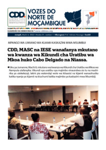 06/03/2022 By admin Comment off CDD, MASC na IESE wanafanya mkutano wa kwanza wa Kikundi cha Uratibu wa Mkoa huko Cabo Delgado na Niassa