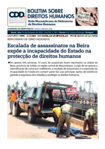 17/11/2022 By admin Comment off Escalada de assassinatos na Beira expõe a incapacidade do Estado na protecção de direitos humanos