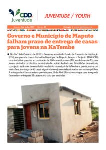 03/06/2022 By admin Comment off Governo e Município de Maputo falham prazo de entrega de casas para jovens na KaTembe