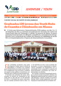Graduados 120 jovens dos Youth Hubs de Cuamba e Chimbunila em Niassa