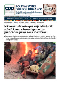20/01/2023 By Gabriel Comment off Não é satisfatório que seja o Exército sul-africano a investigar actos praticados pelos seus membros